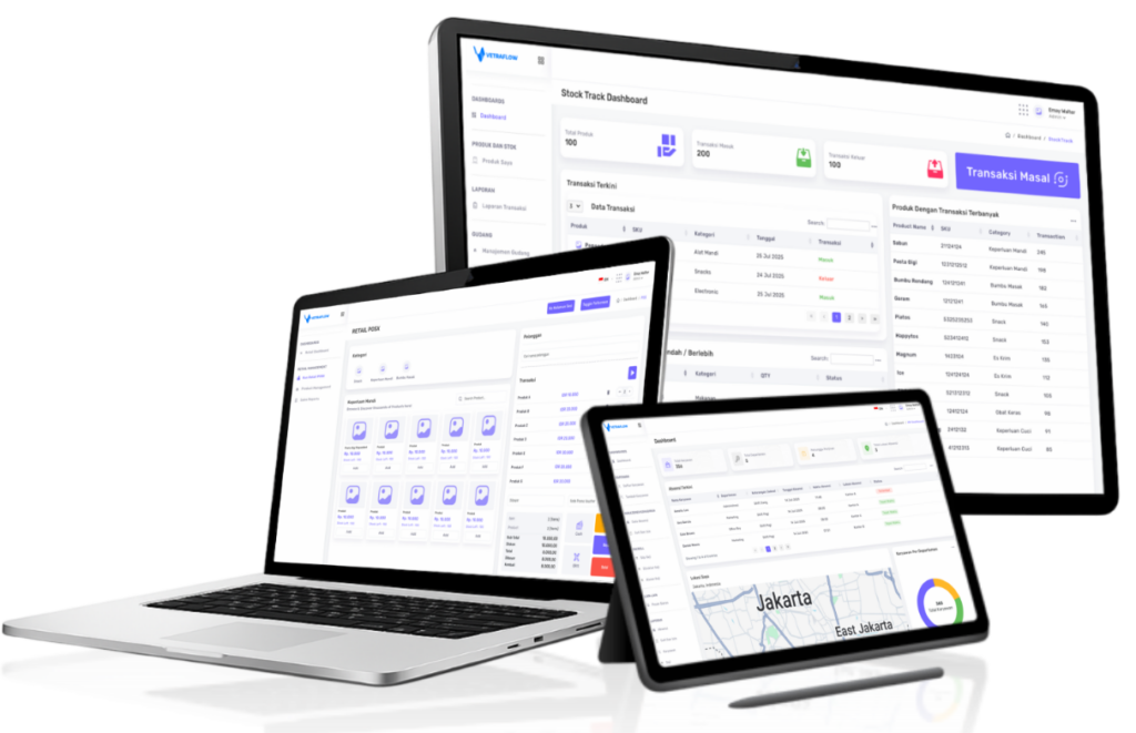 Di perjalanan, di toko, atau saat bertemu klien — aplikasi mobile VetraFlow memberi Anda akses cepat ke data penting, aktivitas harian, dan insight real-time. Fleksibel, ringan, dan siap membantu bisnis bergerak lebih cepat.